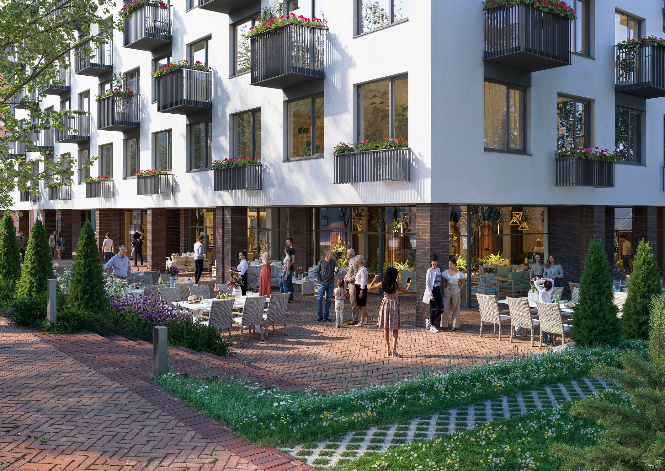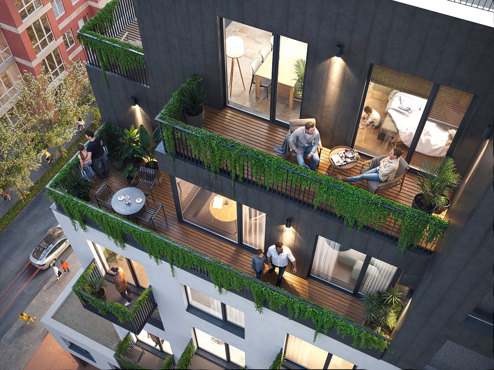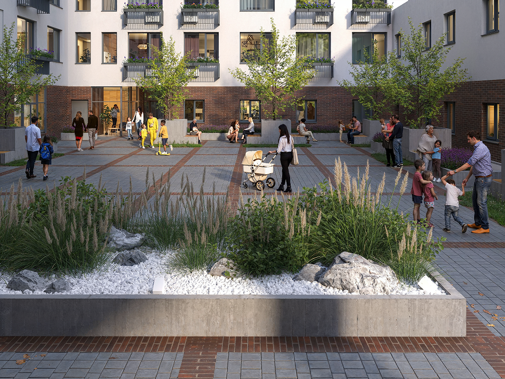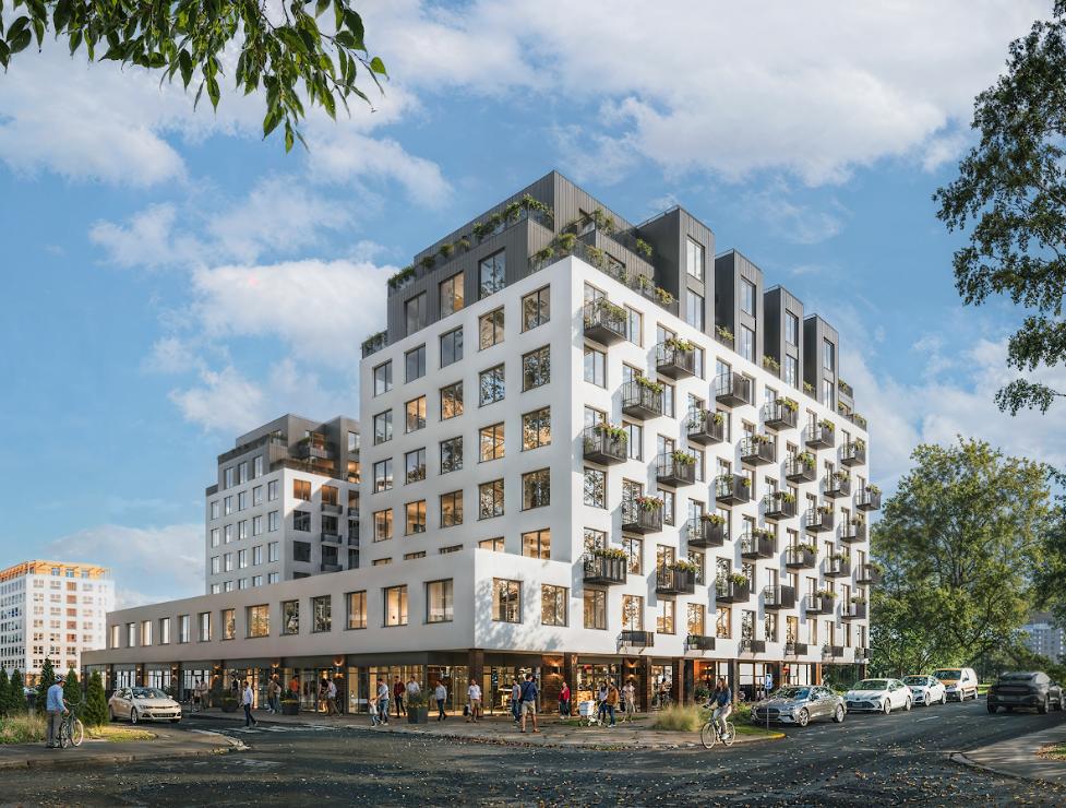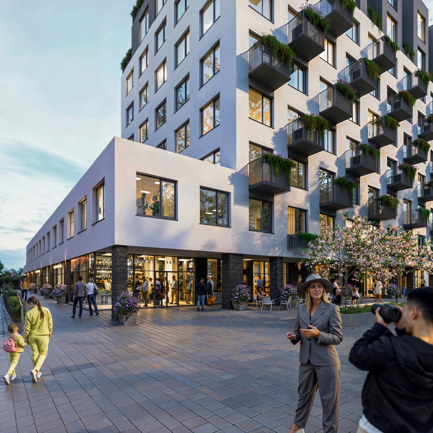 ЖК “Олімпійський WHITE” — центральний будинок із власною торговою галереєю та приватною територією для мешканців. Під час його будівництва архітектори надихались скандинавською архітектурою, функціональність та прості лінії якої вдало поєднуються у сучасних проєктах та створюють гармонійну природну атмосферу.